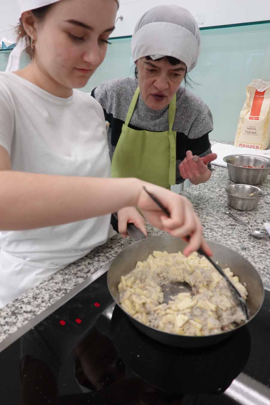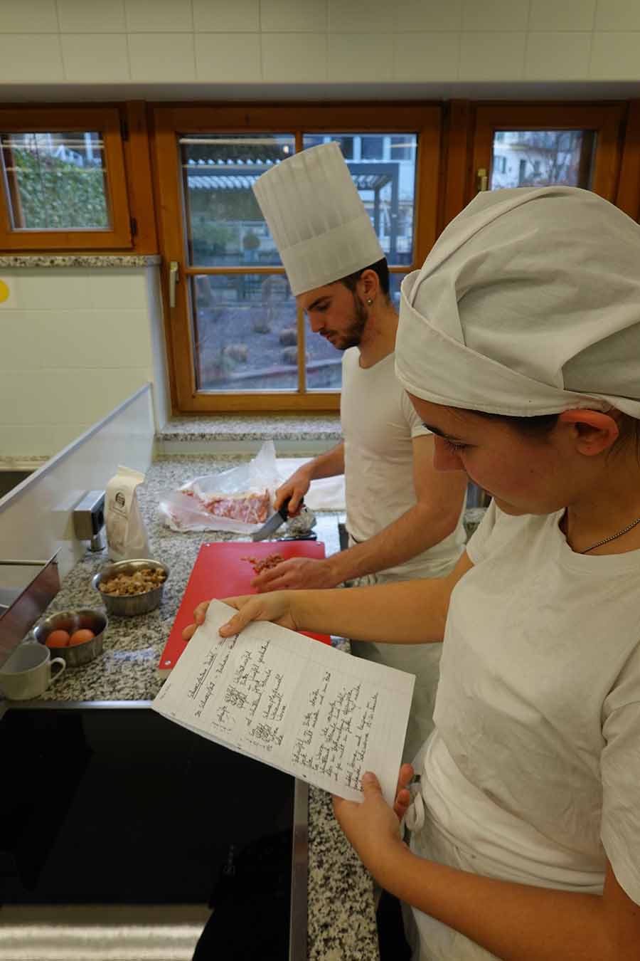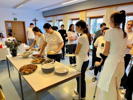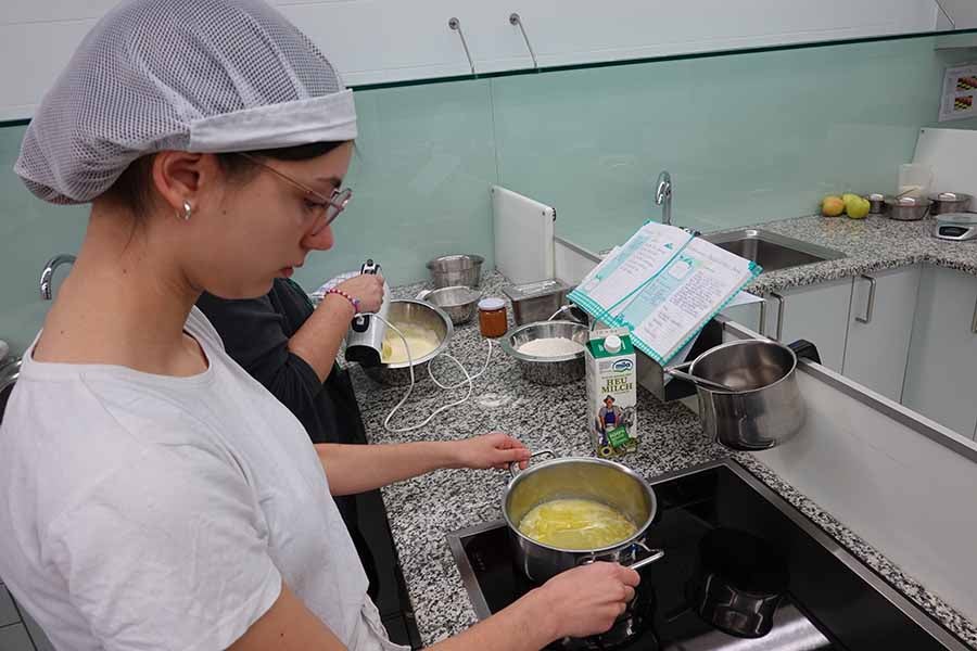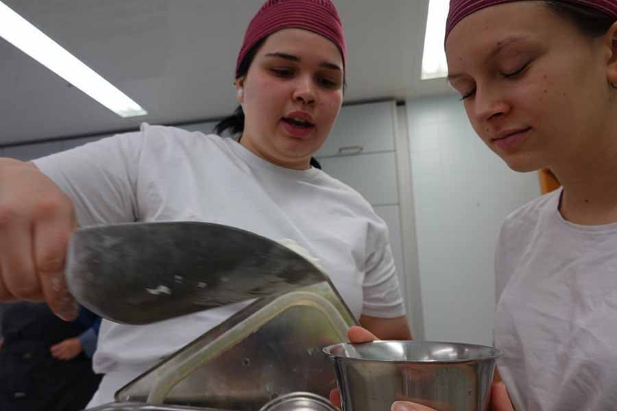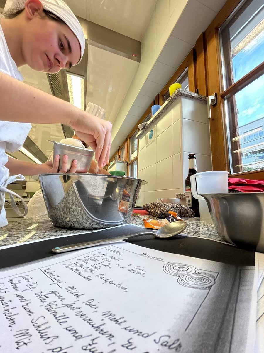 Unterstützt wurde das Projekt am Herd von Anita Spitaler, Fachlehrerin für traditionelle Lebensmittelherstellung, die mit sicherer Hand das Kommando in der schuleigenen Lehrküche übernahm, und im Service von der versierten Fachlehrerin Theresia Reiterer.