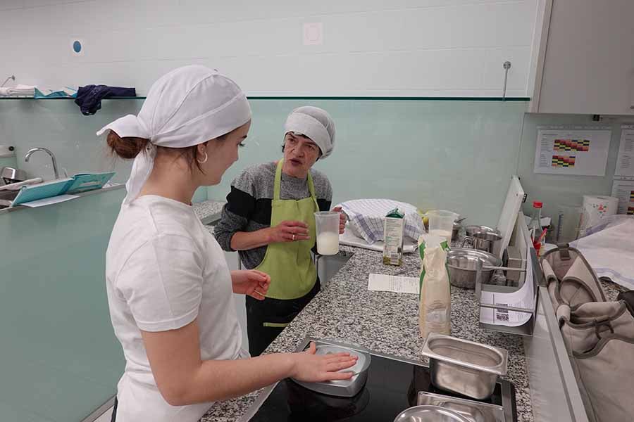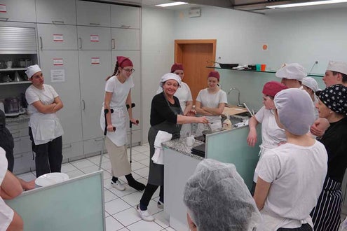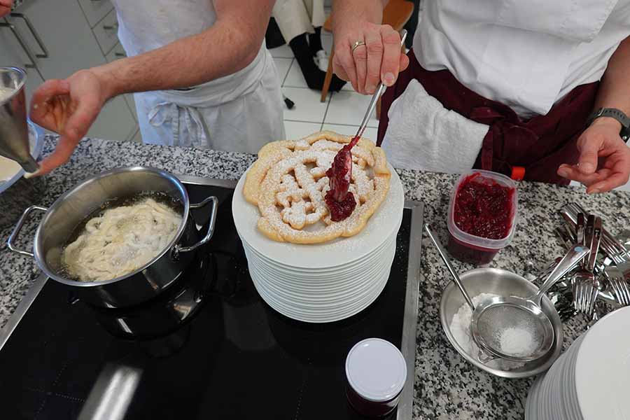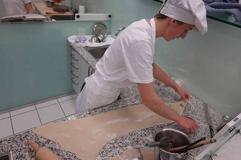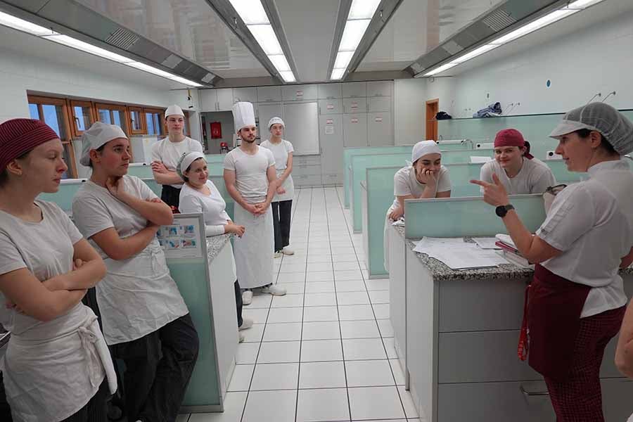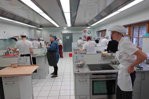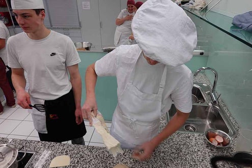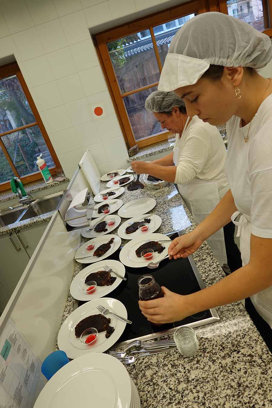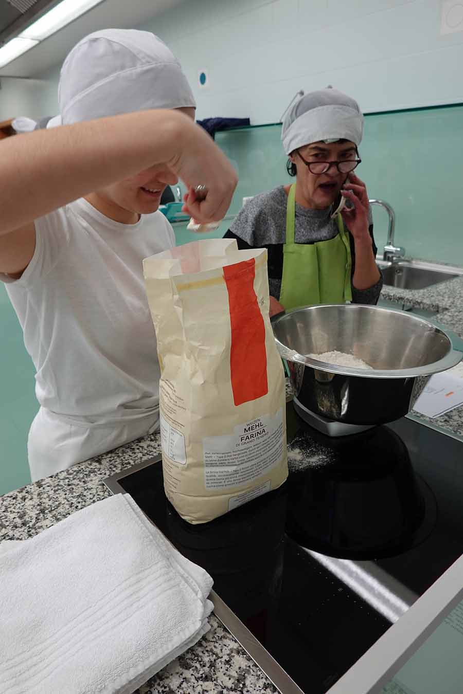 Unterstützt wurde das Projekt am Herd von Anita Spitaler, Fachlehrerin für traditionelle Lebensmittelherstellung, die mit sicherer Hand das Kommando in der schuleigenen Lehrküche übernahm, und im Service von der versierten Fachlehrerin Theresia Reiterer.