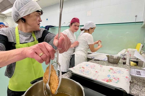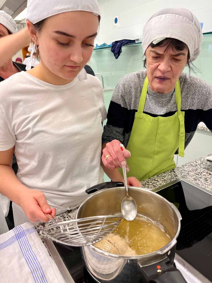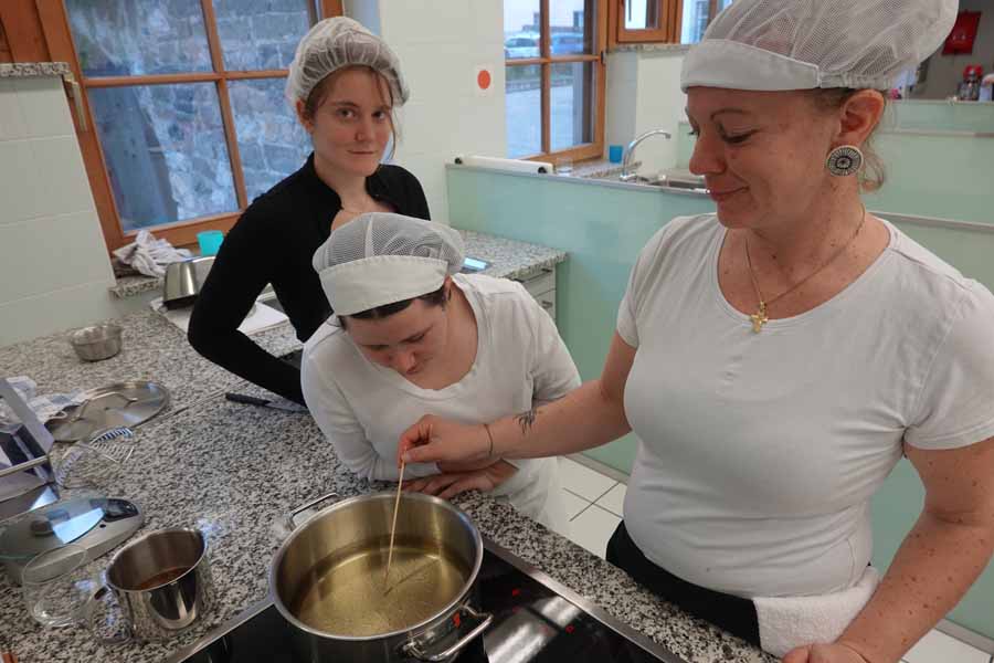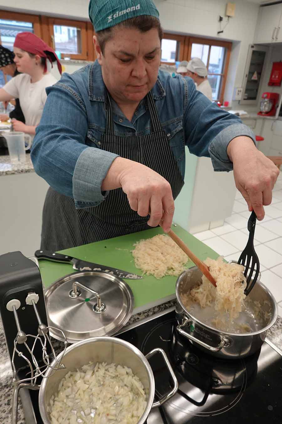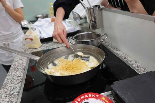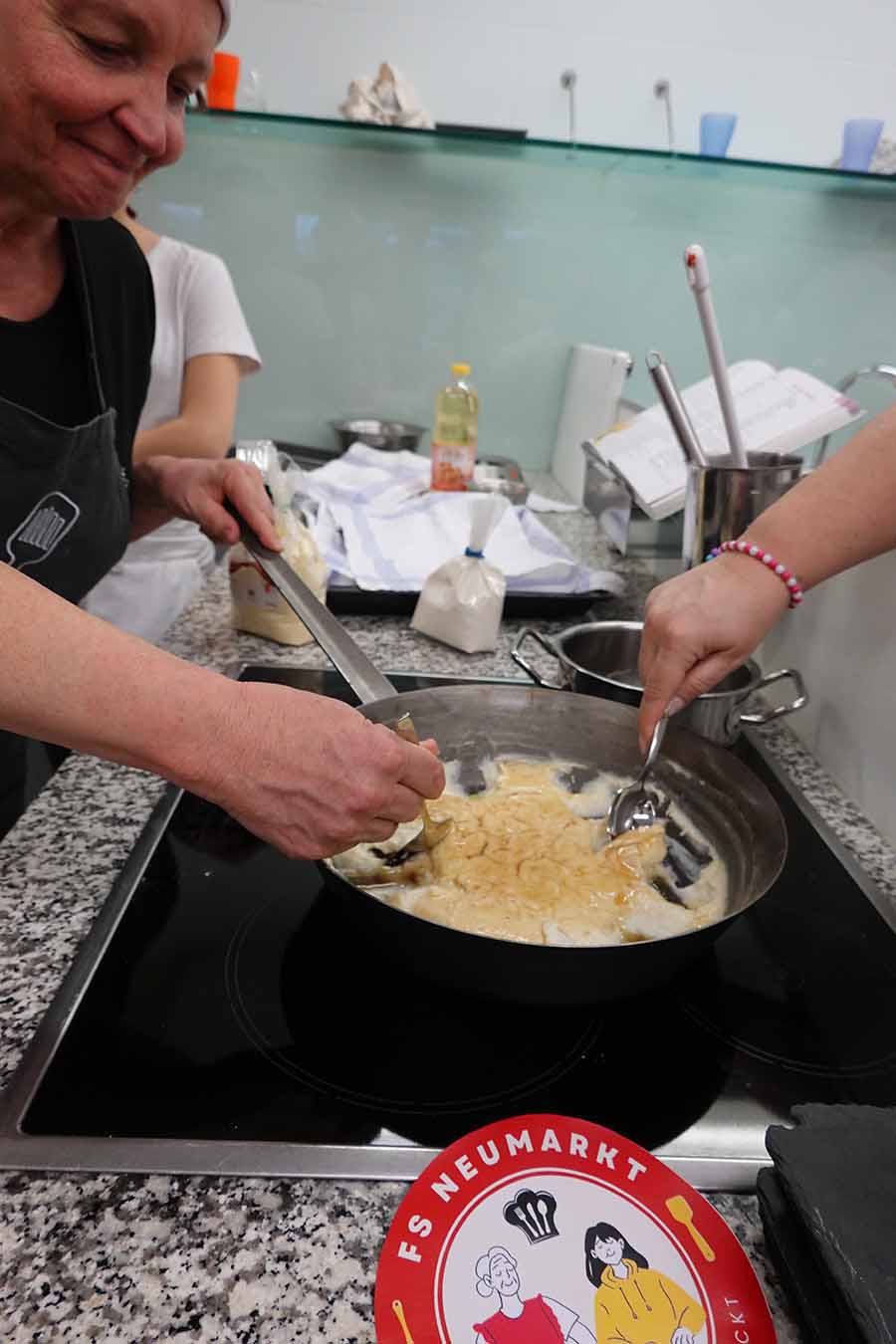 Unterstützt wurde das Projekt am Herd von Anita Spitaler, Fachlehrerin für traditionelle Lebensmittelherstellung, die mit sicherer Hand das Kommando in der schuleigenen Lehrküche übernahm, und im Service von der versierten Fachlehrerin Theresia Reiterer.