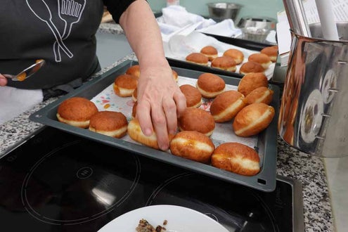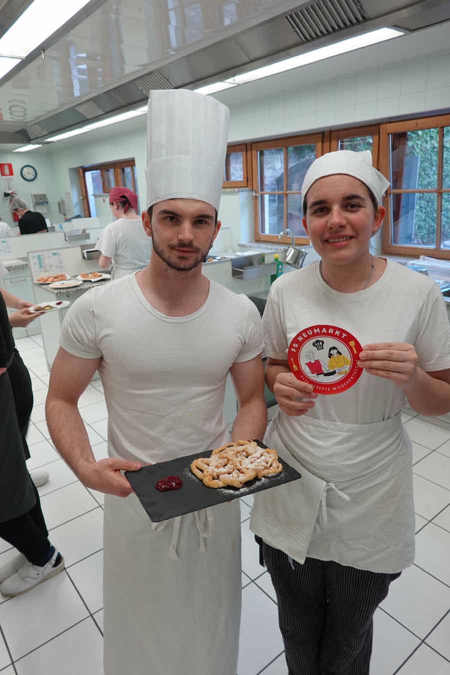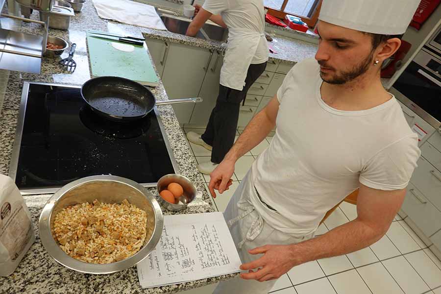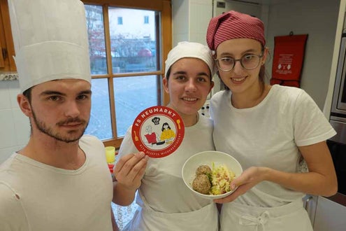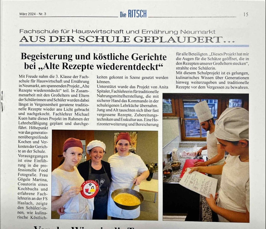 Mit großer Freude nahm die 3. Klasse der Fachschule für Hauswirtschaft und Ernährung in Neumarkt an dem spannenden Projekt "Alte Rezepte neu entdeckt" teil. In enger Zusammenarbeit mit den Großeltern und Eltern der Schülerinnen und Schüler wurden längst in Vergessenheit geratene traditionelle Rezepte wieder ans Licht geholt und mit Begeisterung nachgekocht. Michael Kuen, Fachlehrer für IKT an der Schule, hatte das aufwändige, mehrmonatige Projekt initiiert. Die Schülerinnen und Schüler begannen im Herbst mit einer Ideensammlung für das Projekt. Zu Hause befragten sie Großeltern oder andere Verwandte und Bekannte nach alten Familienrezepten oder suchten und fanden handschriftliche Rezeptsammlungen, die sich in Familienbesitz befanden und fast vergessen waren. Am Ende stand ein generationenübergreifendes Kochen und Probieren in der Schule.