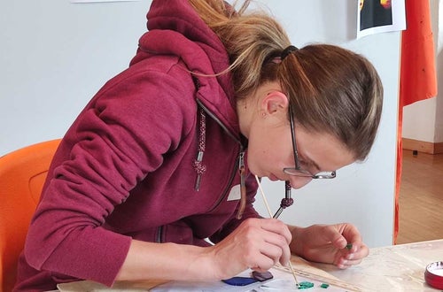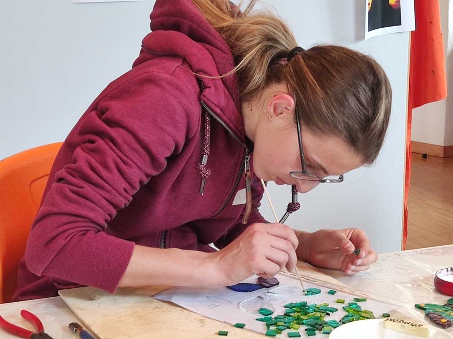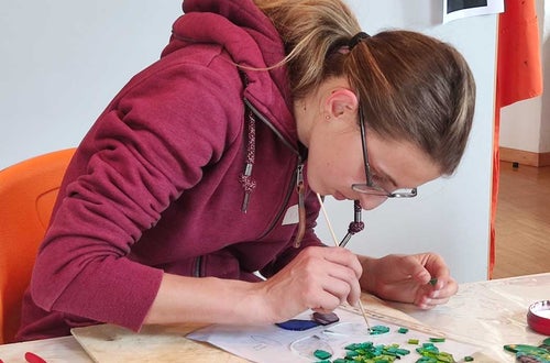 Unter fachkundlicher Anleitung der Glaskünstlerin Sabrina Barcatta aus Margreid entstanden kleine Kunstwerkwerke aus Glas.