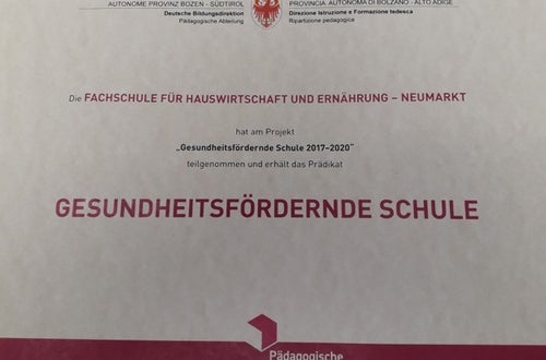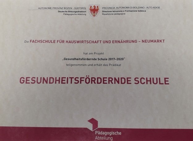Das zentrale Anliegen dieses Projektes ist es, die Lebenswelt der Schule so zu gestalten, dass sich Kinder, Jugendliche und Erwachsene dort wohl fühlen und mit Freude und Erfolg lernen, arbeiten und mitgestalten. Die Fachschule beteiligte sich am landesweit ausgeschriebenen Projekt und ein Team aus der Schule beschäftigte sich intensiv mit dem Thema. Die Mitglieder der Arbeitsgruppe besuchten Fortbildungen mit fachkundigen Referenten und erstellte eine Situationsanalyse an der Schule. Diese bildete die Basis für die Erstellung eines Projetplanes. An der Schule wurden bereits verschiedene Maßnahmen zur Gesundheitsförderung im Laufe der Schuljahre umgesetzt, wie z.B. gesunde Ernährung, der richtige Umgang mit Lebensmitteln und die gesunde Jause für alle Schüler*innen. Da Schule nicht nur Lernort für Schüler*innen, sondern auch Arbeitsraum für eine Reihe von Mitarbeiter*innen ist, wurden im Projekt gezielt Maßnahmen für diese Zielgruppe geplant. Der Vortrag „Das Glück wohnt im Kopf“ bildete den Auftakt der Projektdurchführung. Es folgten eine Reihe von Veranstaltungen, wie z.B. Rückenschule und die Herstellung von Salben. Abgeschlossen wurde das Projekt mit einem gemeinsamen Waldbaden in Lichtenstern am Ritten.