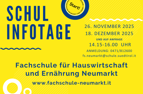 Anmeldung erforderlich! (fs.neumarkt@schule.suedtirol.it, Telefon 0471 812 600)